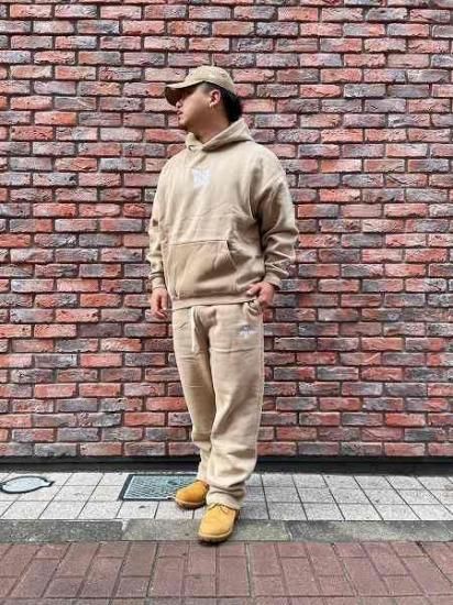 肌触りの良い良質な12ozのコットン素材のパーカーとスエットパンツのセットアップ。