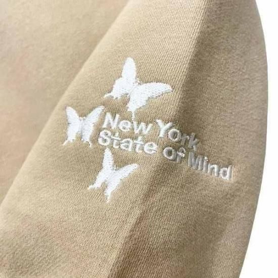 左右の袖には、アーチロゴ、「New York State of Mind」のメッセージの刺繍が施されています。
