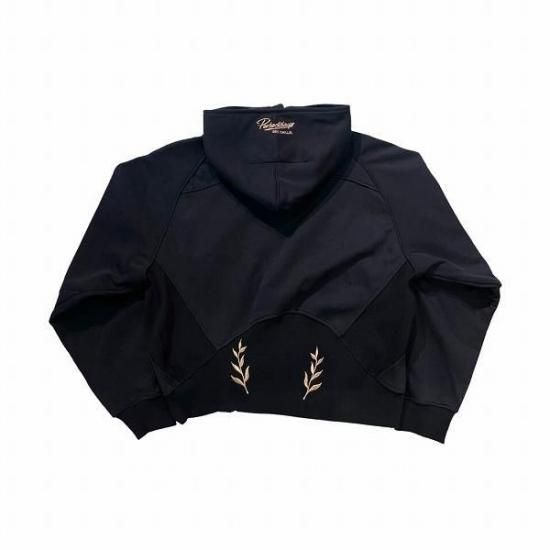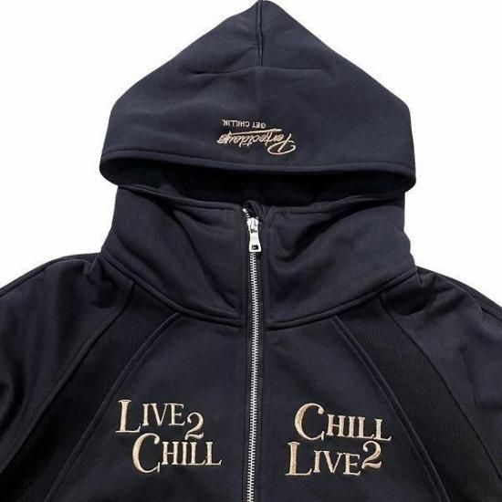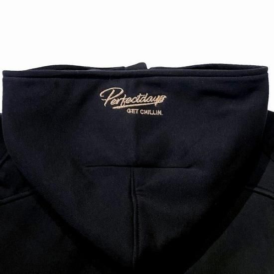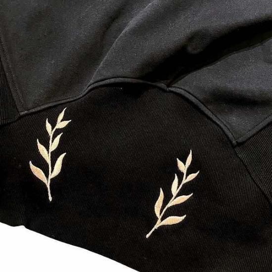 両胸、フード、テールにはお馴染みのアイコンとスローガンの刺繍が施されています。