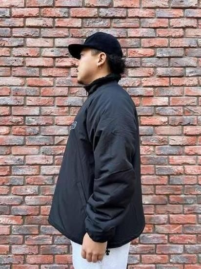 肉厚なボアジャンパーと、スタンドカラーのナイロントラックジャケットがリバーシブルで楽しめる便利なライトアウター。
