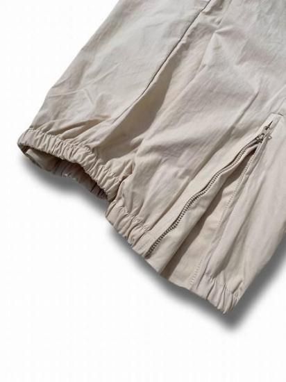 ウエストはゴム入りで、ゆったりとした腰回りとなっておりサイズ感の調整にはリフレクターチップ入りスピンドルコードが装備。